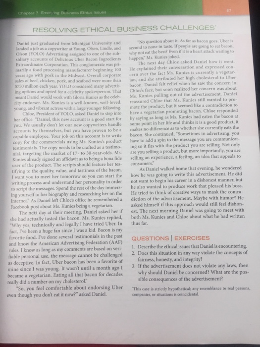 Solved Resolving Ethical Business Challenges Daniel Just Chegg Com
